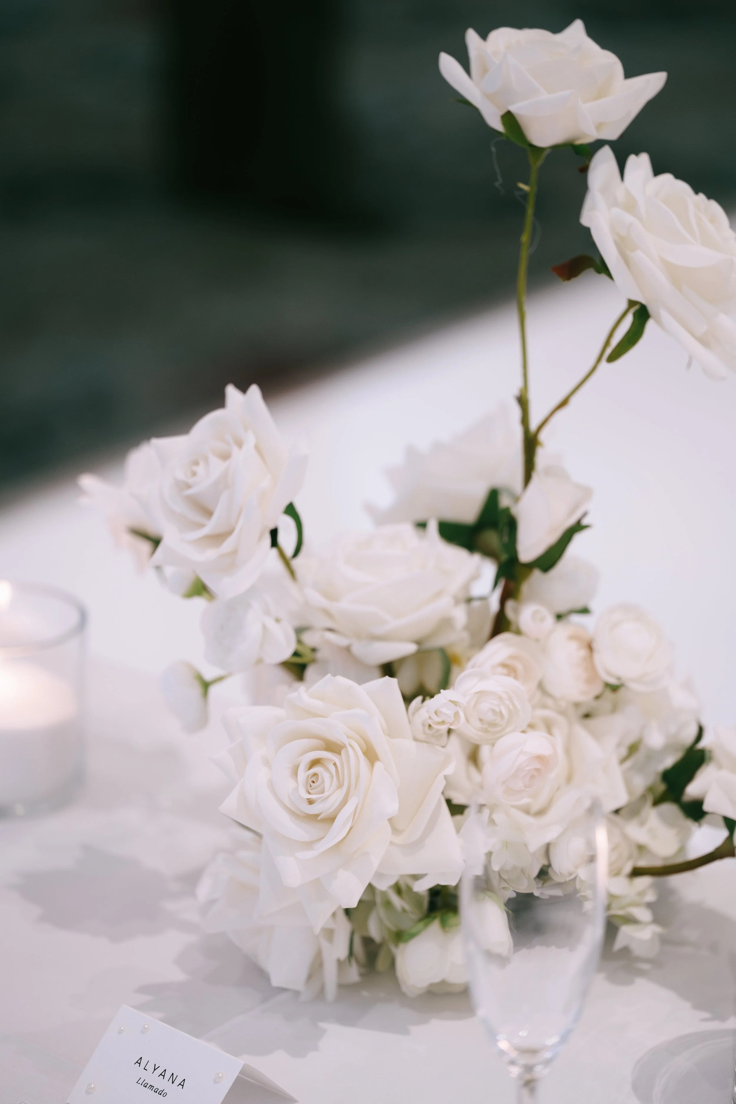 As the designer for this wedding, we took the time to truly understand Brandon and Natasha - their story, their personalities, and the quiet elegance that defines them. High school acquaintances who reconnected years later after growing into themselves, their relationship carries a depth that feels both effortless and intentional. Humble yet discerning, they inspired a design approach that reflected who they are not only as a couple, but as individuals. Their shared love for travel - and especially their engagement in Vernazza, Italy, a place both romantic and timeless - became the foundation of the visual narrative. To represent their graceful, refined personalities, we paired soft blush and rose tones with sculptural layers, rich textures, and romantic candlelight, creating florals with airy movement and gentle lightness that echoed the unfolding of their journey together.