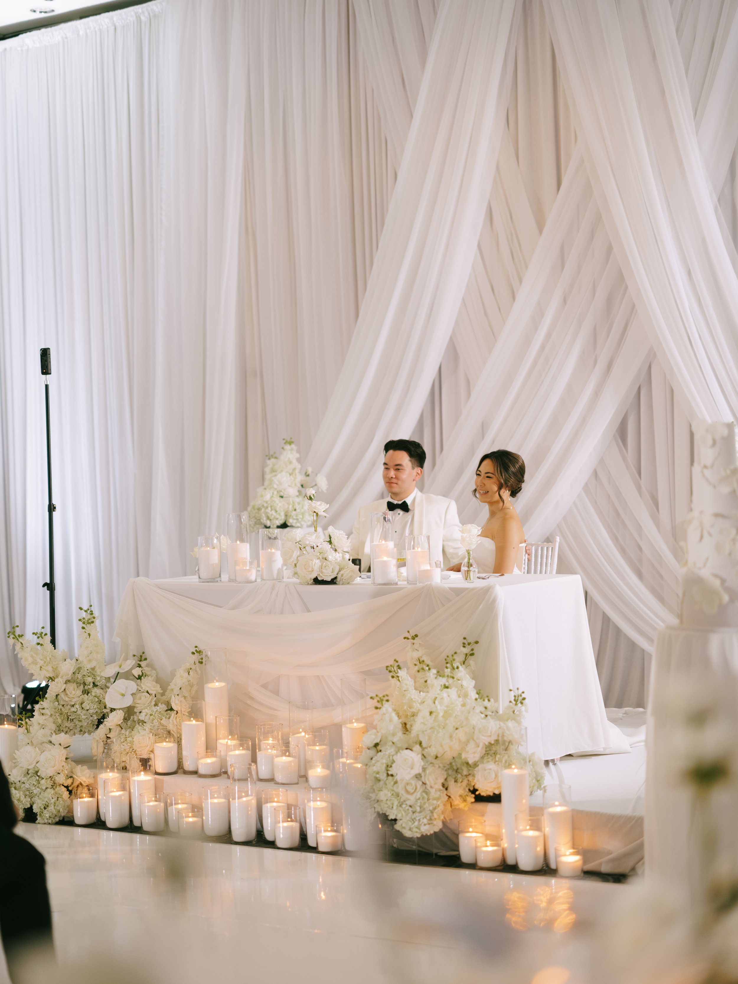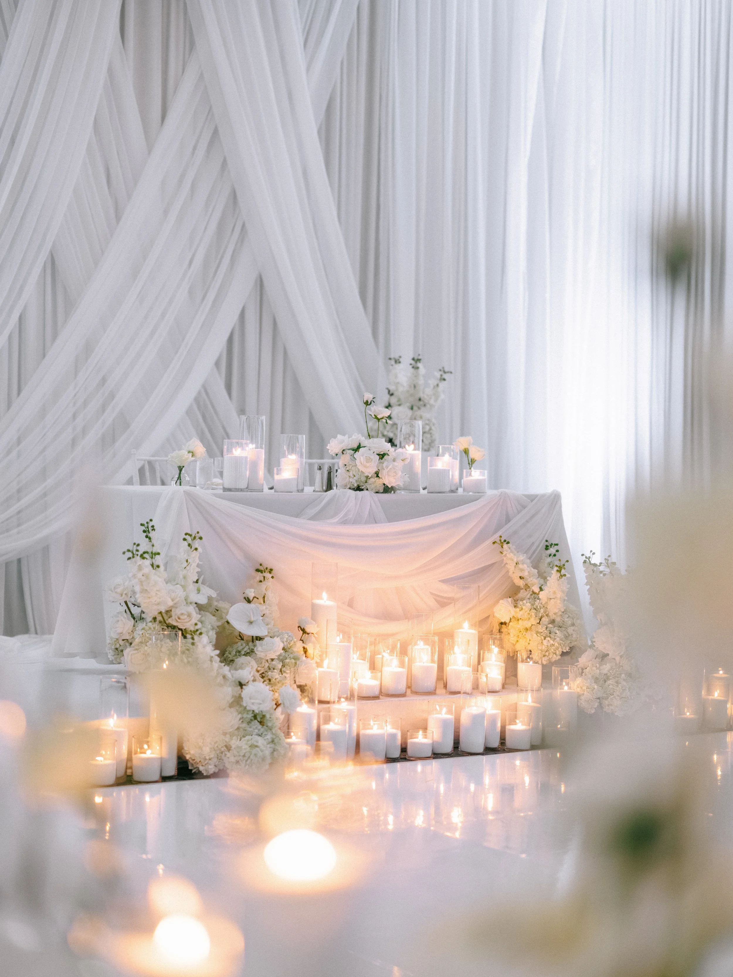 We had the pleasure of serving as Oliver & Reizel’s designer and partial planner for this thoughtfully layered celebration. Drawing from a vision of timeless European grandeur, the design was deeply personal - white tones echoed the snow-covered mountains where the couple first met while snowboarding, while delicate pearl details paid homage to their engagement at Tofino.